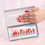 Three - dimensional decorations like strawberries and bows increase the three - dimensional sense and fun of the nail pieces, making the fingertips more lively and playful.