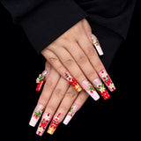 The hand - painted patterns of strawberries and flowers are delicate and lifelike, showing superb nail art craftsmanship and increasing the artistic value of the nail pieces.
