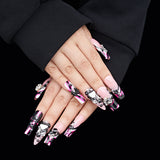 A mix of coffin and stiletto shapes gives the nails a sharp, high-fashion look that elongates the fingers and demands attention