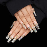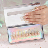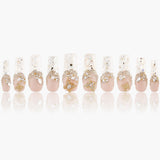 3.Crystal-Clear Base: The lower half of the nail features a transparent, crystal-like base with embedded iridescent shards that reflect light beautifully, creating a magical effect.