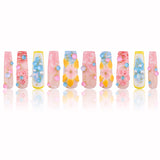 The pastel blue and soft lemon yellow gradients are hand-swirled at the tips, mimicking ocean tides meeting warm sand.