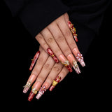3D jewels and golden studs bring depth and glam—each finger is a piece of wearable art 💎