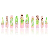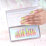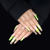Vibrant neon green gradient paired with a soft nude base — the ultimate summer glow