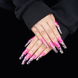 💅 Pink Ombre + Clear Floral Tips: Sweet yet sophisticated, perfect for that fairy-core aesthetic.