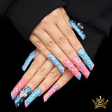 4. Gradient effect: The base color of the nail is a gradient design, and the transition from pink to blue is natural, giving the overall design more layers and fluidity.