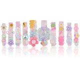 Every nail is stacked with multiple 3D charms: hearts, bows, butterflies, gummy bears, rhinestones, candies, bees, and flowers