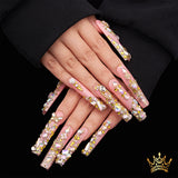 The rhinestones and gold accents on these nails exude a sense of opulence and sophistication, much like the iconic style of the protagonist, Holly Golightly, in the film.