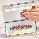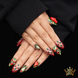 2. Gorgeous gemstone decoration: Each nail is set with shiny red and green gems, adding a sense of luxury and sophistication, highlighting the unique style of the whole.
